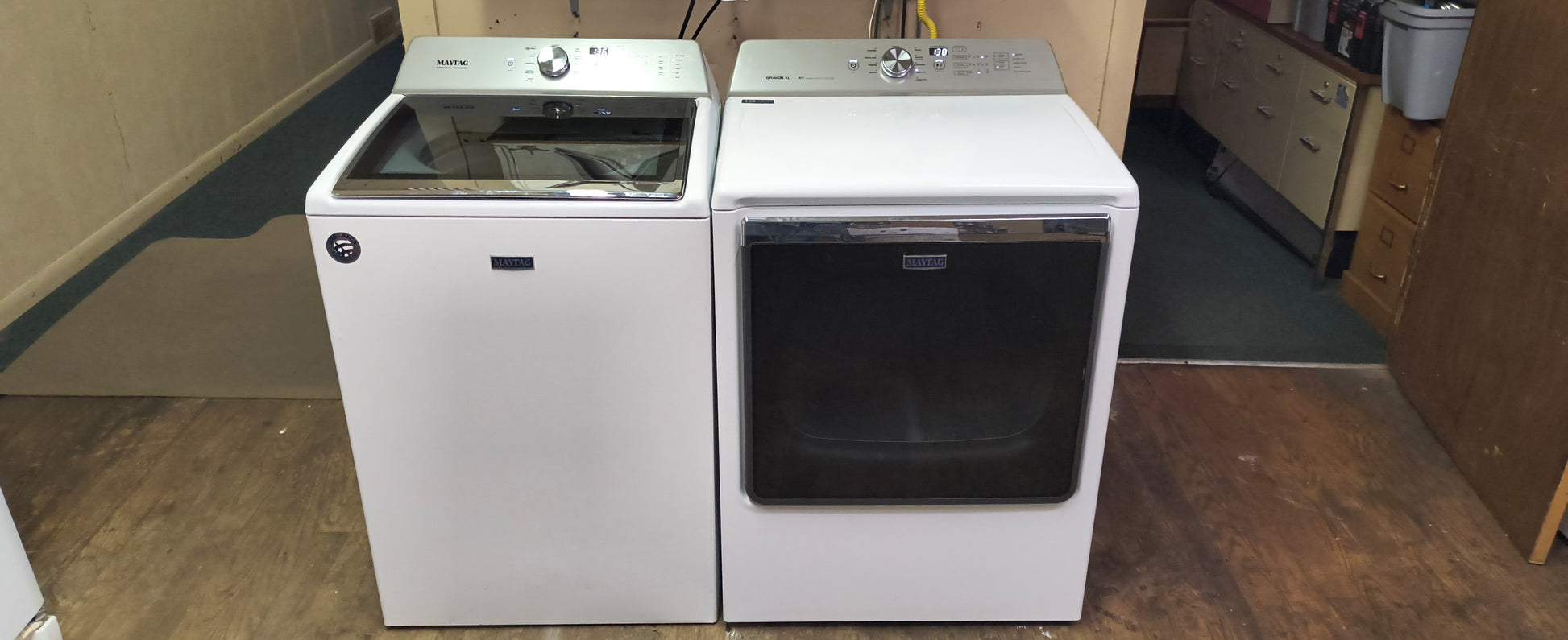 MAYTAG WHITE ELITE TOPLOAD WASHER & ELECTRIC BRAVOS XL DRYER SET
